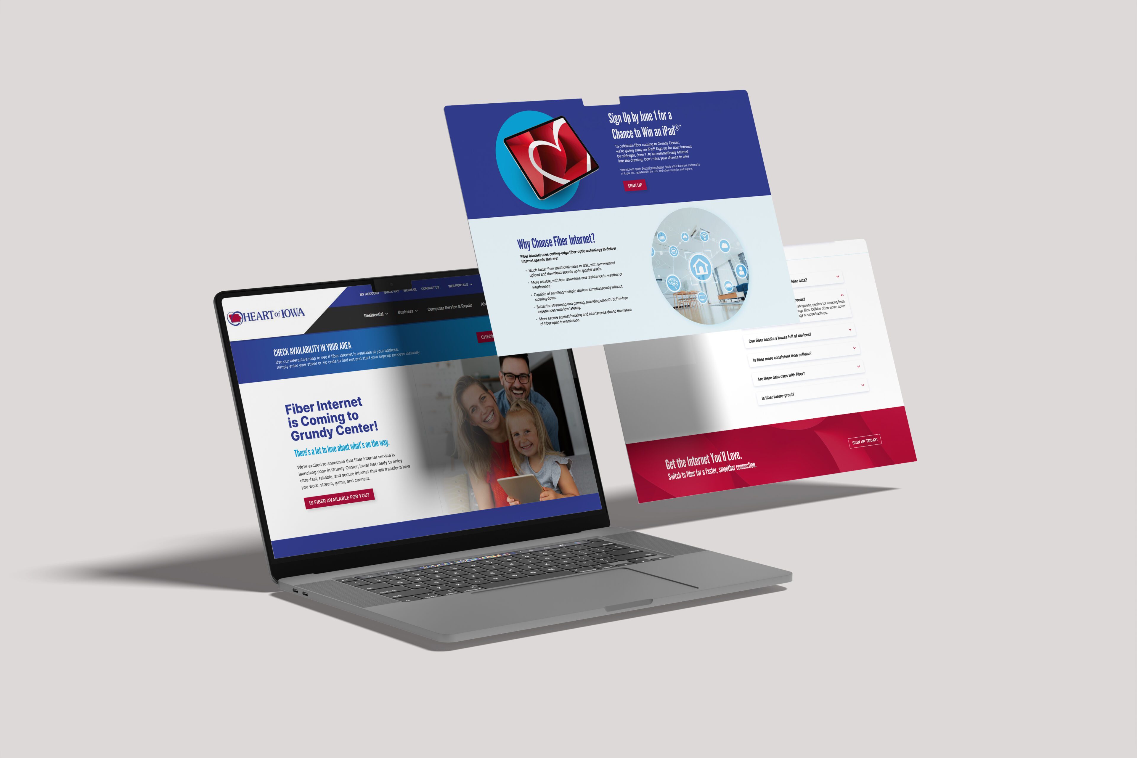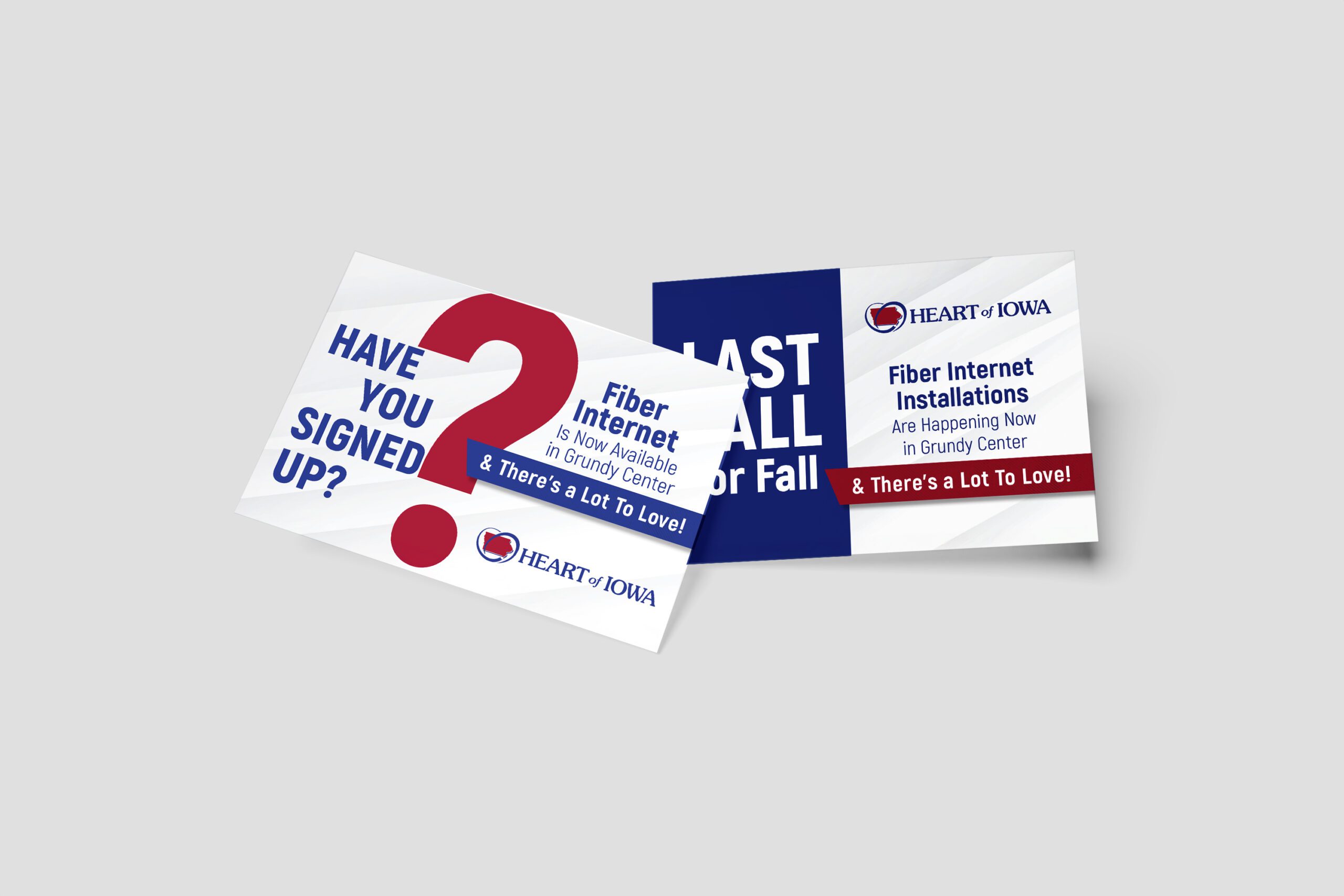 The Heart of Iowa Co-op was expanding its reach into Grundy Center, Iowa, and needed a clear plan to support its fiber rollout. We developed a comprehensive marketing strategy that served as a blueprint, including messaging, collateral development, and campaign coordination. We provided a comprehensive suite of marketing services including strategic consulting, design and writing, public relations, motion graphics, web updates, team training, and paid media planning to drive awareness and helped the client meet and exceed their take rate goal within their identified timeline.