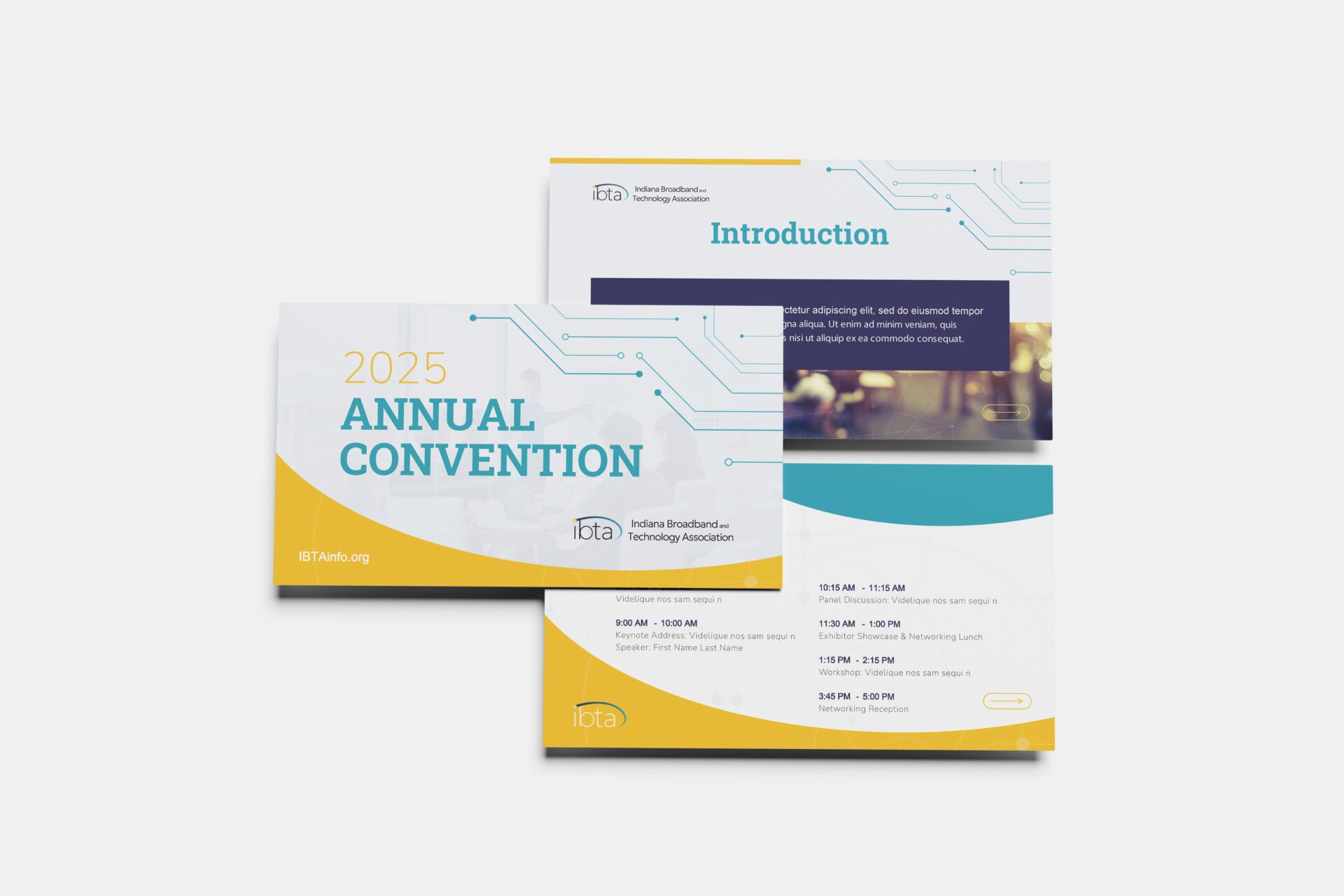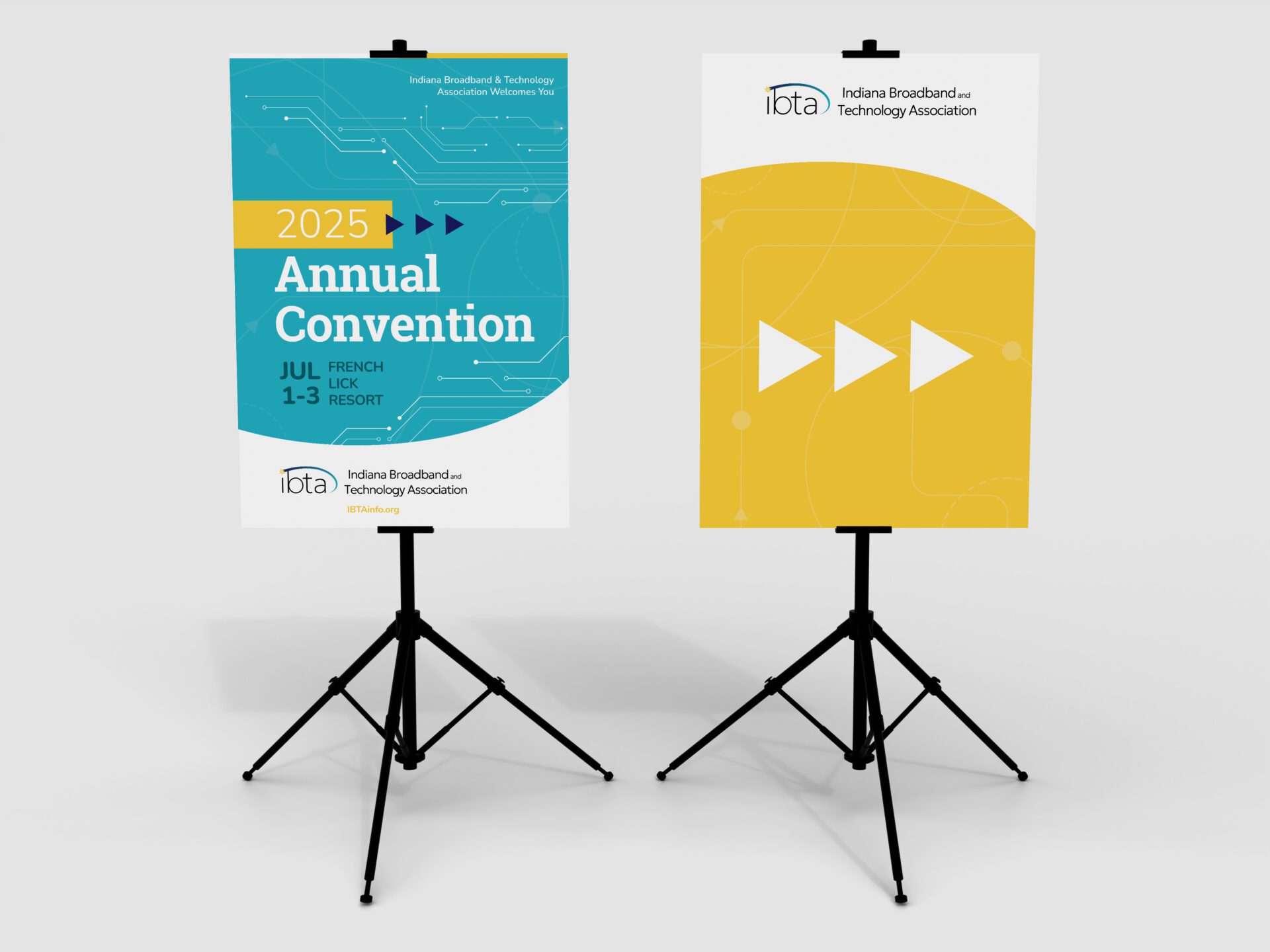Preparing for their 2025 Annual Convention, the Indiana Broadband Technology Association asked us to bring cohesion and polish to their event materials. We delivered a full suite of signage, session slides, and wayfinding tools—elevating the experience and reinforcing their identity as a tech-forward leader.